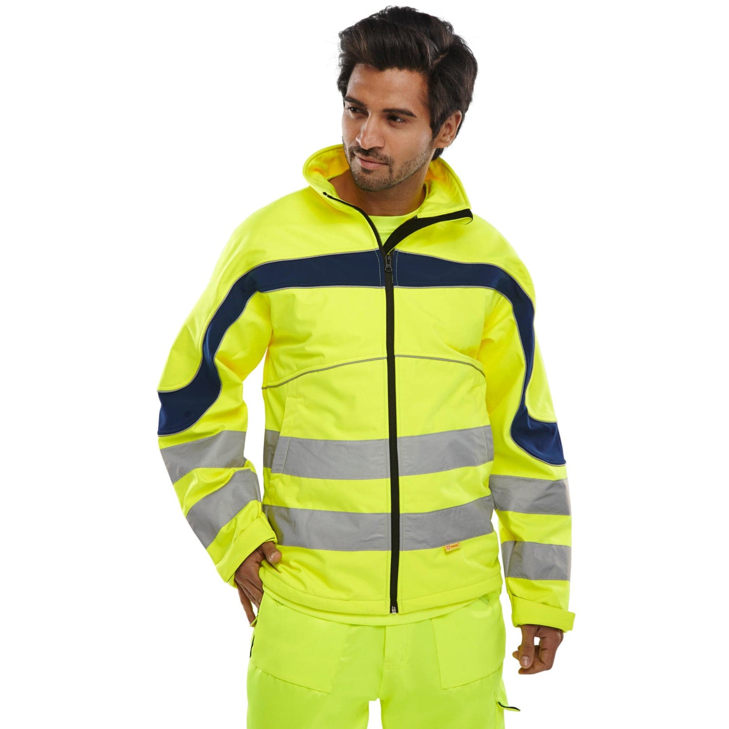 Eton Hi-vis Soft Shell Jacket - Saturn Yellow/Navy Blue