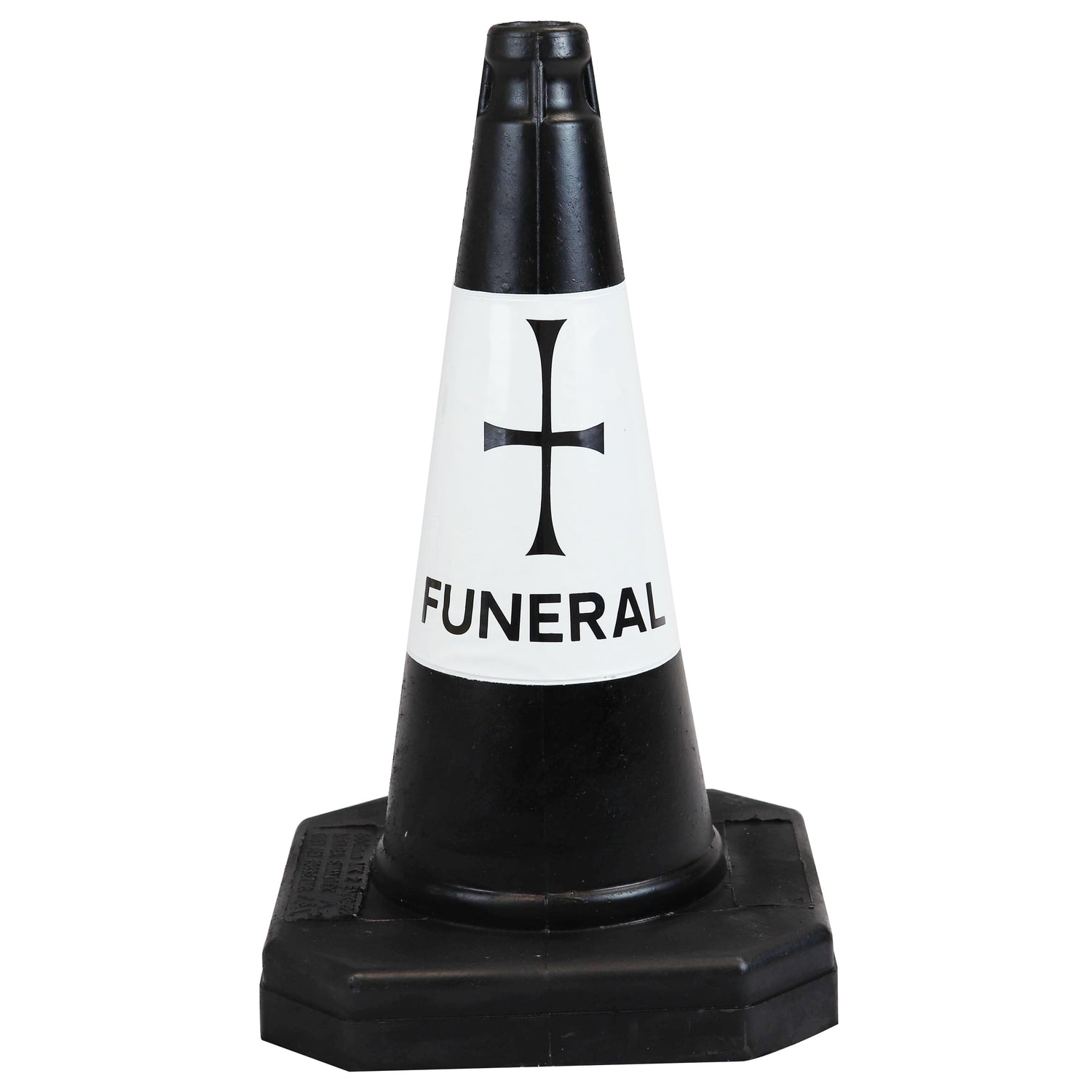 Manufactured in black with a bespoke funeral sleeve, the cone is clearly visible, preventing the public parking in areas that you need to keep free, giving you extra peace of mind that your service will go without disruption.