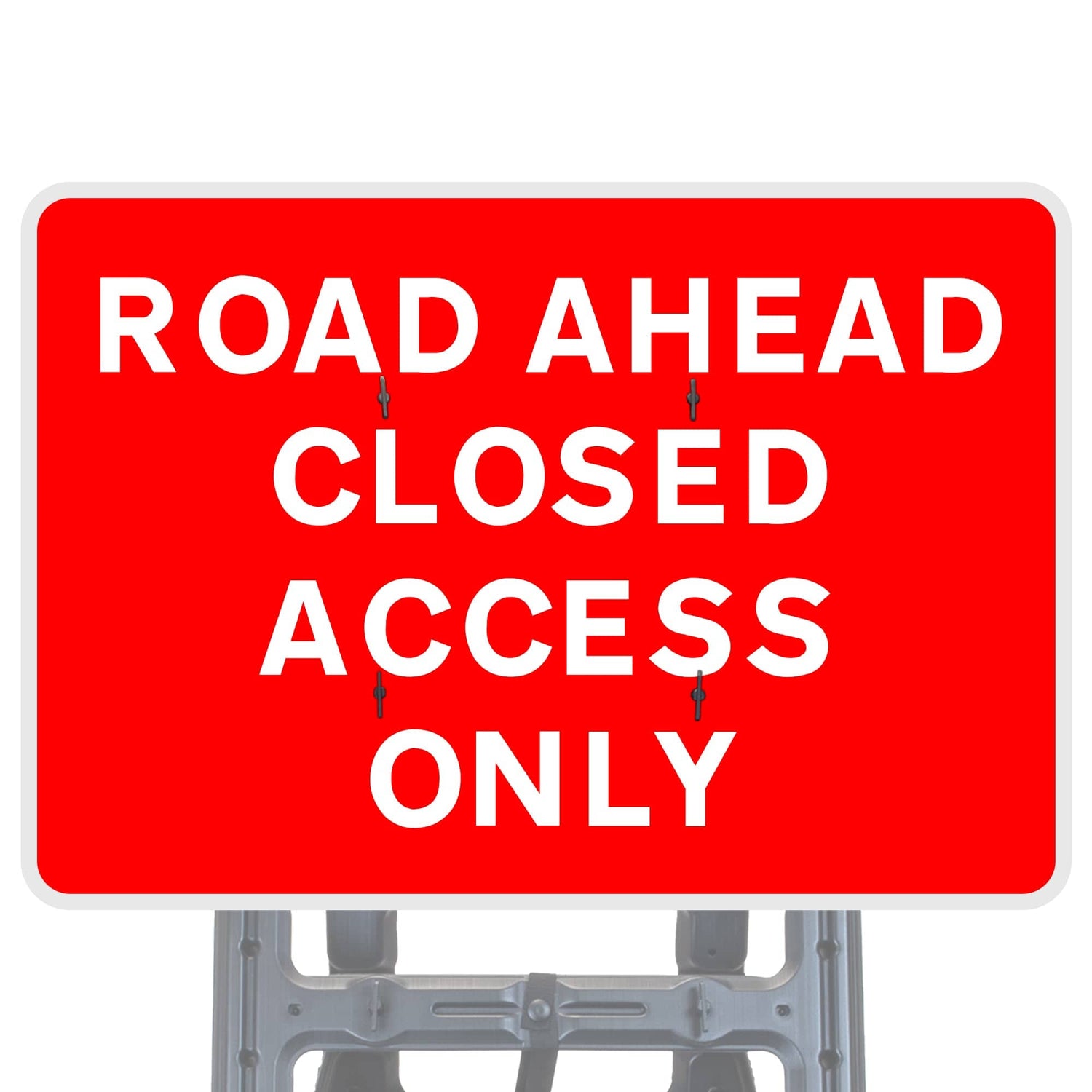 The 'Road Ahead Closed Access Only' sign notifies road users that the road ahead is closed, allowing only authorized access to buildings and properties along the route